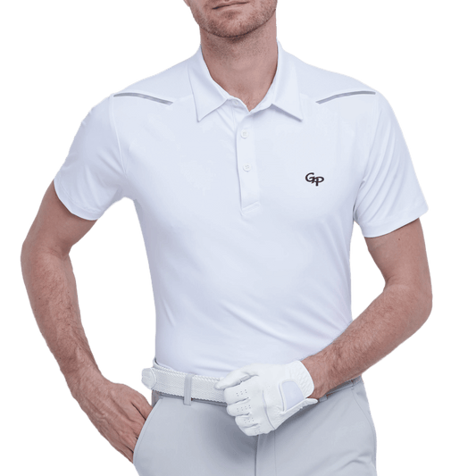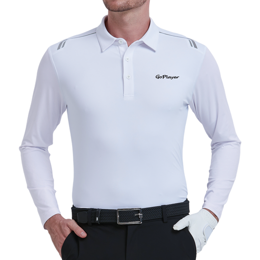 GoPlayer Men's Quick-Dry UV Protection Long-Sleeve Polo Shirt (White)