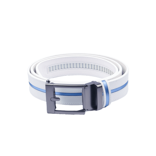 GoPlayer Wide Slide Buckle White Golf Belt (Blue Stripe)