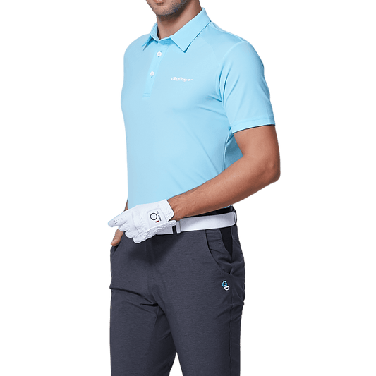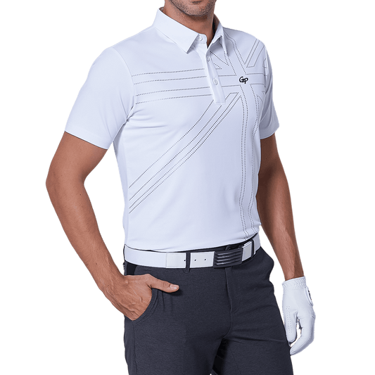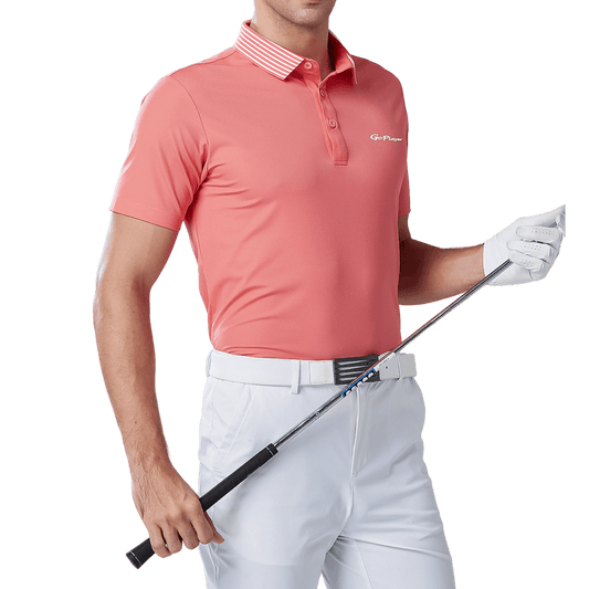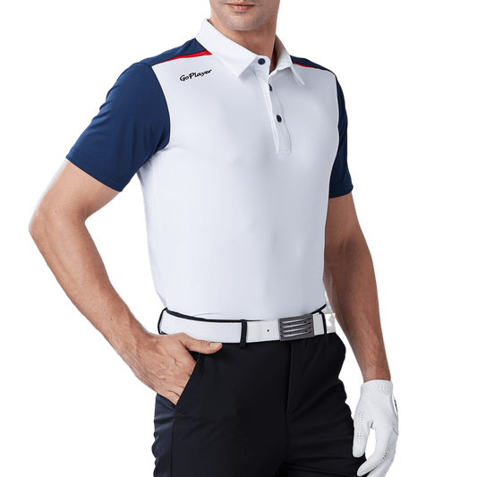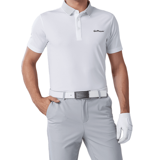 GoPlayer Men's Elastic Quick Dry Short Sleeve Top (White Striped Collar)
