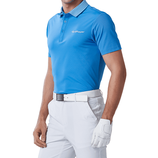 GoPlayer Men's Elastic Quick Dry Short Sleeve Top (Striped Collar Blue)