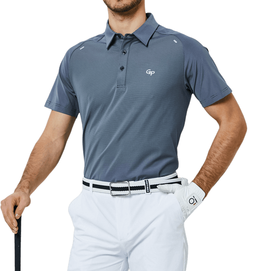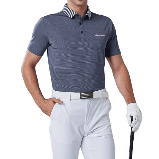 GoPlayer Men's Elastic Quick Dry Short Sleeve Top (Striped Collar Gray)