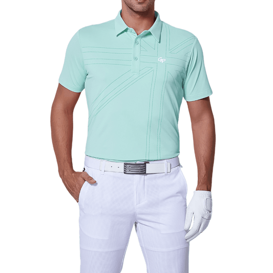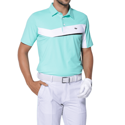 GoPlayer Men's Elastic Quick Dry Short Sleeve Top (Mint Green and White)