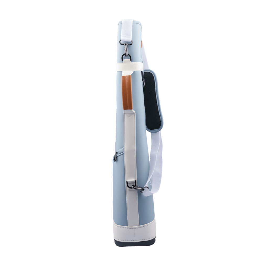 The GoPlayer exquisite leather half gun bag is made of high-quality pebbled synthetic leather with fine texture. The open zipper design makes it easy to put in and out the clubs. The 20x16 cm hard shell outsole provides stable support and is not easy to tip over. The thickened foam at the bottom further protects the club and upgrades the protection. The thick padding on the straps is comfortable and load-bearing, making it easy to carry without pressure. The leather handles on the sides are designed to be lightweight and portable. The built-in mesh pocket allows gloves and other accessories to be properly stored. The small pocket details on the front are designed for easy use. Exquisite hardware and flexible hooks can be fastened at will, showing the integration of function and aesthetics. GoPlayer golf sports brand is professionally built and of excellent quality.